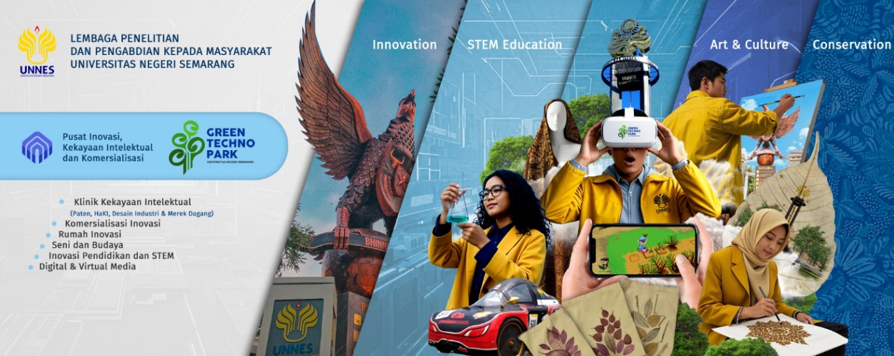 This project involved the design of visual identities for Green Techno Park (GTP) and several institutional units under LPPM UNNES. The scope of work included logo design for Rumah Inovasi, Green Techno Park, Batik Puspandari, and the Center of Excellence for Child-Friendly Education Science and Technology. Each logo was developed to reflect the institution’s core values, emphasizing innovation, sustainability, and local cultural identity.
