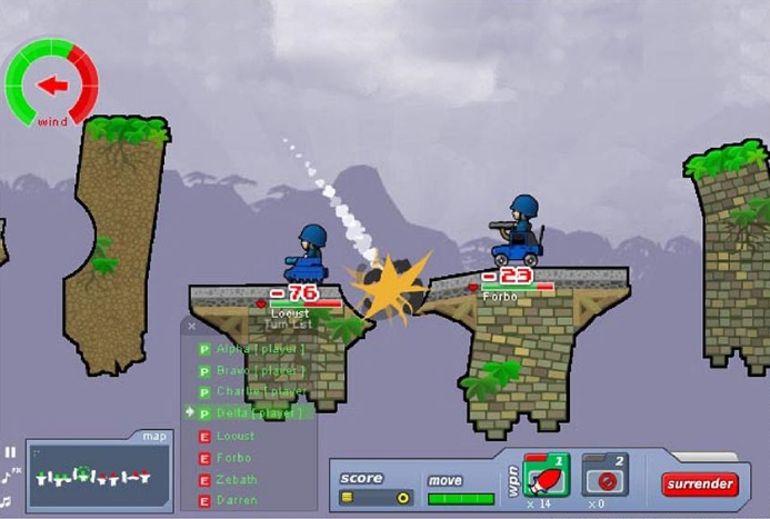 Platform War is a turn-based military strategy game where players engage enemy forces on a destructible platform battlefield, inspired by classic mechanics similar to the Worms series. Each shot can alter the terrain, creating holes and changing tactical possibilities as the match progresses. The game features a variety of military units, including infantry, rocket soldiers, tanks, missiles, and artillery, each with distinct roles and strategic value. Built with 3D pre-rendered visuals and developed using ActionScript 3, Platform War emphasizes thoughtful planning, positioning, and turn-based combat dynamics. The game was published by GamesBook.com and designed to deliver a strategic experience that balances accessible gameplay with deep tactical decision-making.